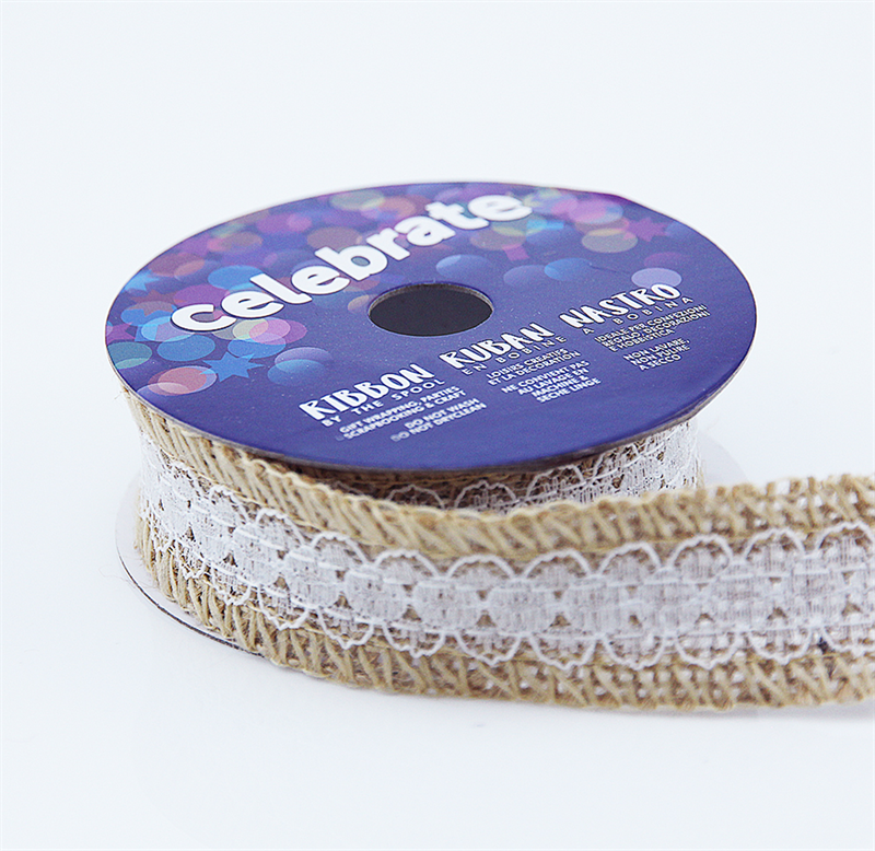 CELEBRATE - Hessian Ribbon W Poly Lace 25Mm X 2M - natural