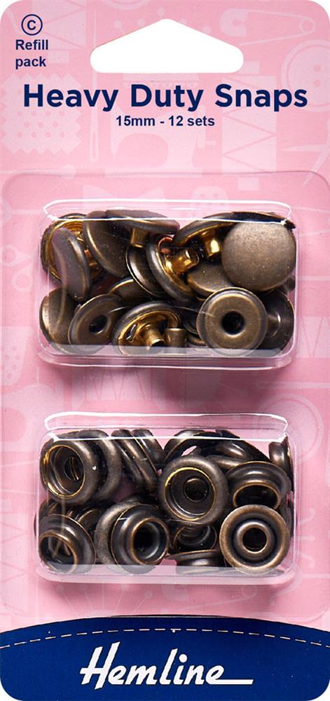 HEMLINE HANGSELL - Heavy Duty Snaps 15mm - Refill 12 Sets - antique brass