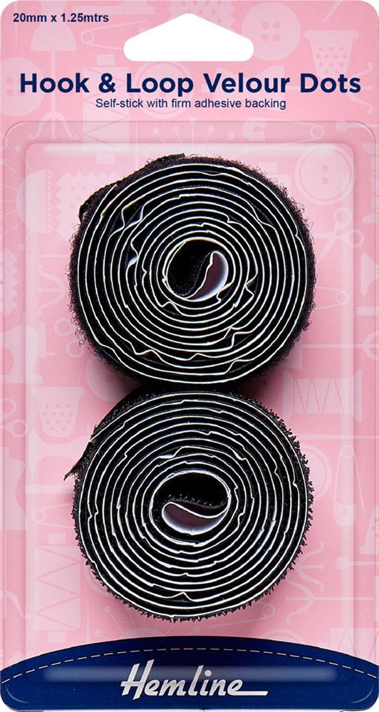HEMLINE HANGSELL - Self Adhesive Hook and Loop Tape, 20mm x 1.25m - black