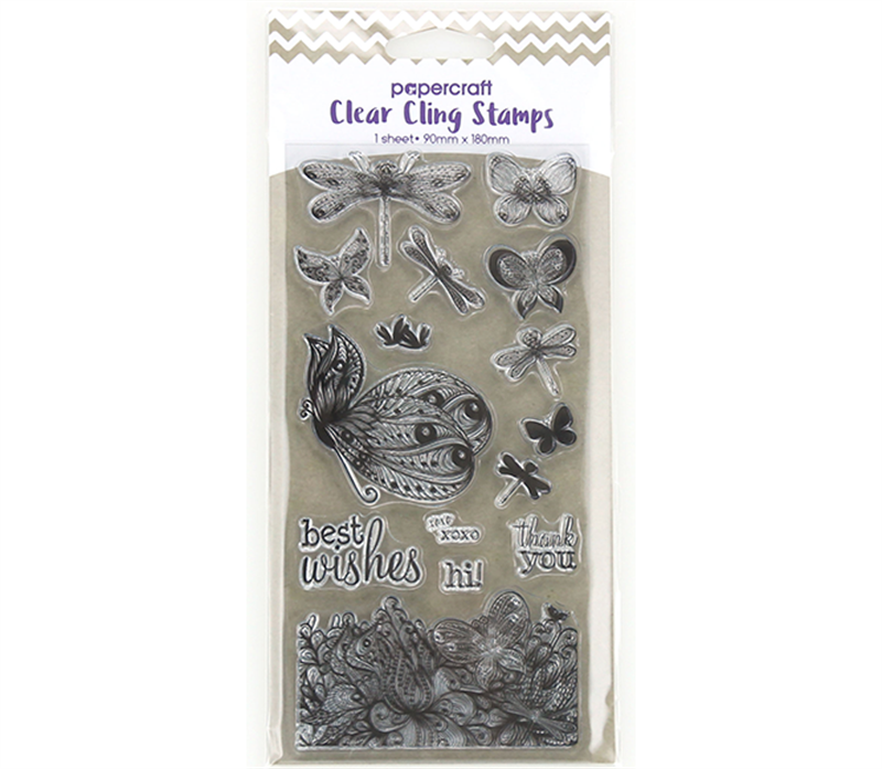 Papercraft Stamps Clear Cling 180 X 90mm - Butterflies Dragonflies