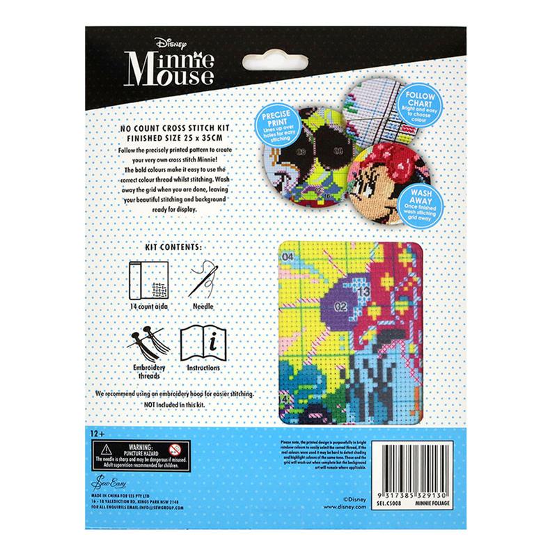SEW EASY NEEDLECRAFT - 25cm x 35cm No Count Cross Stitch Kit - Minnie Foliage