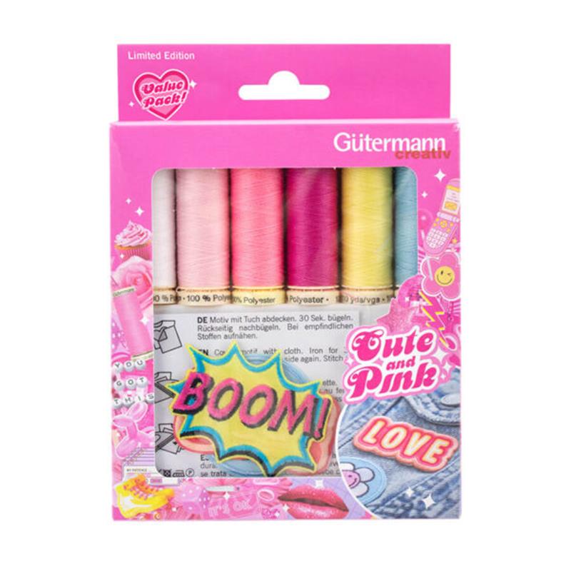GUTERMANN Thread Set Cute & Pink Sew All 100m with Applications - 6 reels